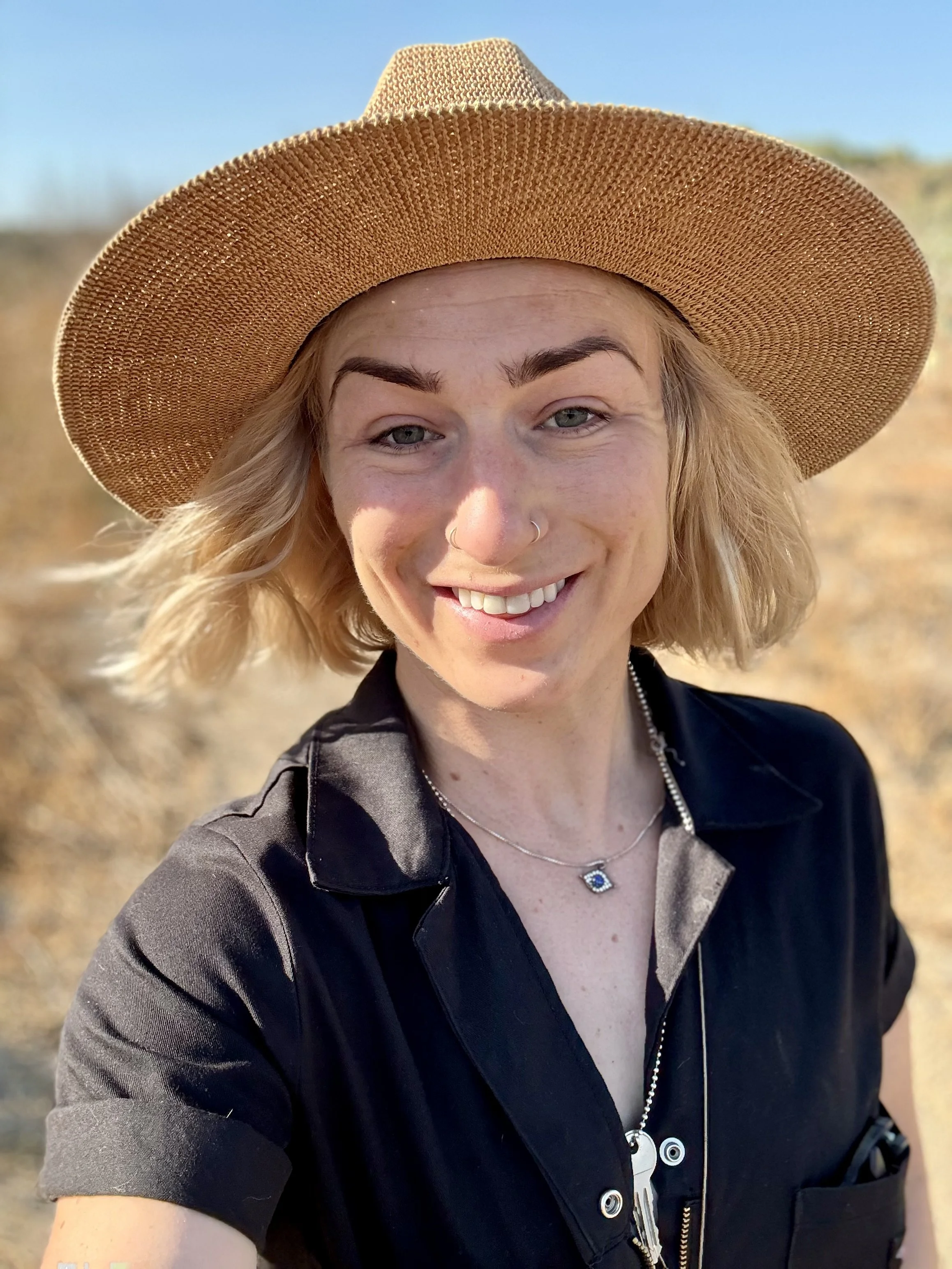 When she is not coaching, leading workshops, or body doubling, you will find this forever artist/creative somewhere in the So Cal mountains tearing downhill, enduro mountain biking or running with her dog Joy on one of the countless, beautiful trails.